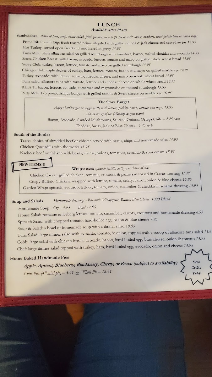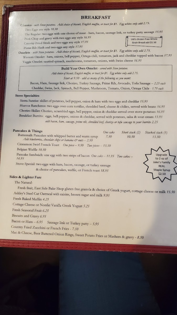 As for ambiance, The Stove maintains a down-to-earth and friendly atmosphere, perfect for families, friends, and solo diners. Many patrons rave about the excellent service, with staff members who genuinely care about your dining experience. As one customer noted, "The food was good, but service was great!" The dining area exudes a charming diner feel, making it a go-to spot for anyone looking for a comforting meal amidst the stunning natural beauty of Mammoth Lakes.