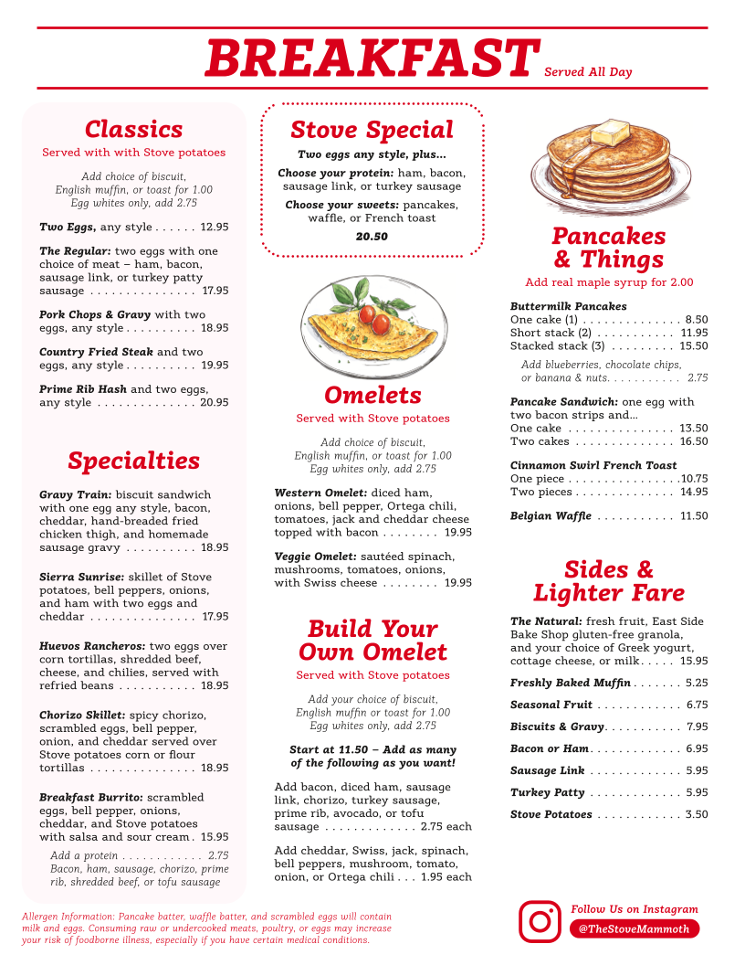 If you find yourself in Mammoth Lakes, CA, don't miss the opportunity to dine at The Stove, a beloved American restaurant located at 644 Old Mammoth Rd. With a cozy diner vibe that feels both inviting and bustling, The Stove offers a delightful spot for locals and visitors alike to enjoy hearty breakfasts and satisfying lunches.